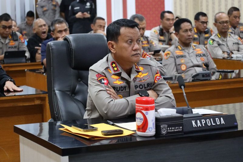 Kegiatan Ini dipimpin langsung oleh Kapolri yang dihadiri oleh Kapolda Banten Irjen Pol Prof. Dr. Rudy Heriyanto didampingi Wakapolda Banten Brigjen Pol M. Sabilul Alif dan Pejabat Utama (PJU) Polda Banten yang diikuti Polda seluruh Indonesia melalui zoom meeting.