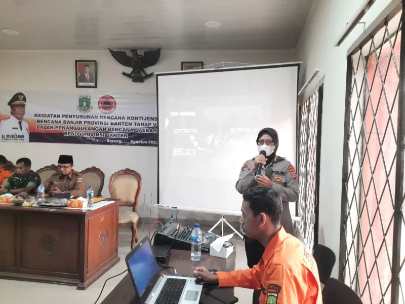 Serang,Poskota.online-Polda Banten menghadiri sekaligus menjadi salah satu narasumber dalam kegiatan Penyusunan Rencana Kontijensi Bencana Banjir Provinsi Banten Tahap V yang bertempat di Aula Badan Penanggulangan Bencana Daerah (BPBD) Provinsi Banten pada Senin (28/08).