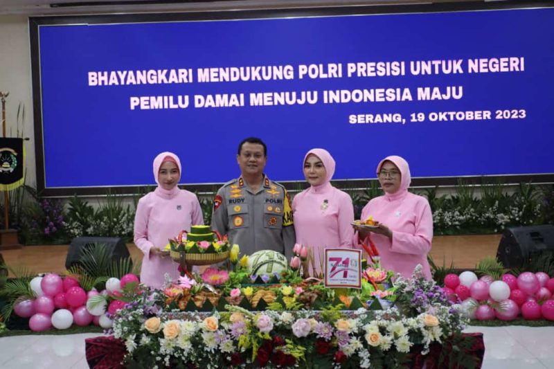 Serang, Poskota.online – Polda Banten menggelar acara peringatan Hari Kesatuan Gerak Bhayangkari (HKGB) Ke-71 Tahun 2023 dengan tema “Bhayangkari Mendukung Polri Presisi untuk Negeri Pemilu Damai Menuju Indonesia Maju”, bertempat di Aula Serbaguna Polda Banten pada Kamis (19/10).