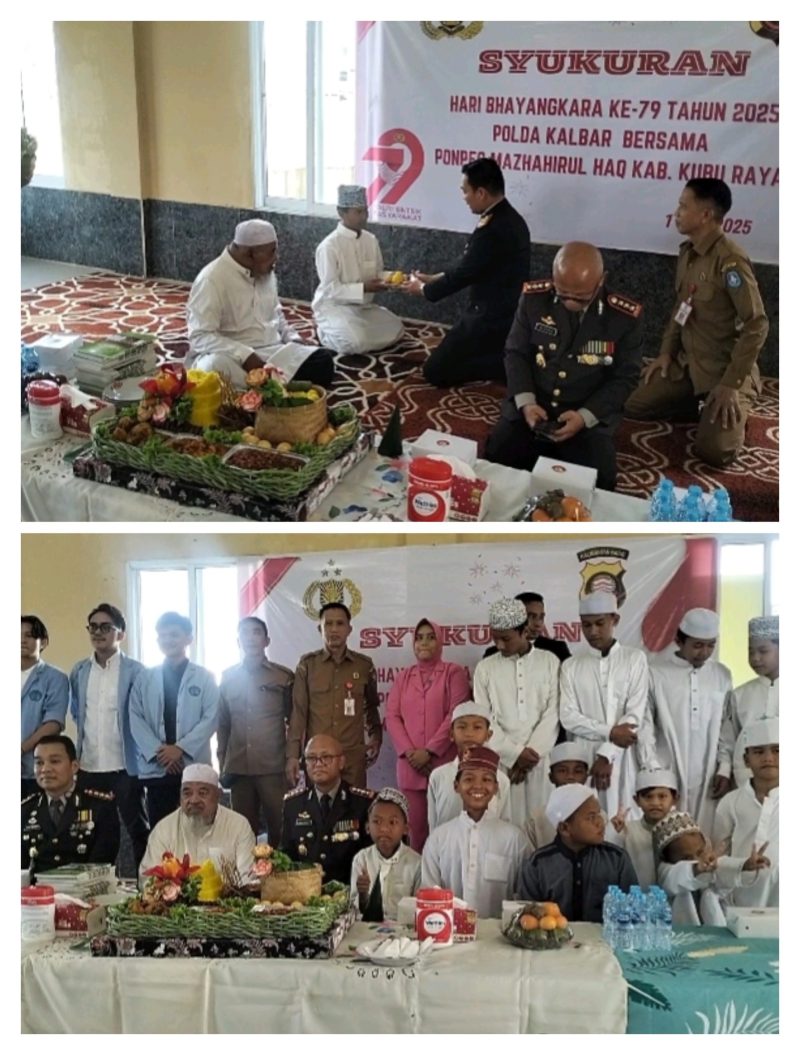 KUBU RAYA Polda Kalbar Poskota Online – Dalam rangka memperingati Hari Bhayangkara ke-79, Polda Kalbar bersama Bhayangkari Polda Kalbar melaksanakan kegiatan penyaluran Bansos di Pondok Pesantren Mazhahirul Haq di Jalan Mayor Ali Anyang Kabupaten Kubu Raya Selasa (1/7/25).