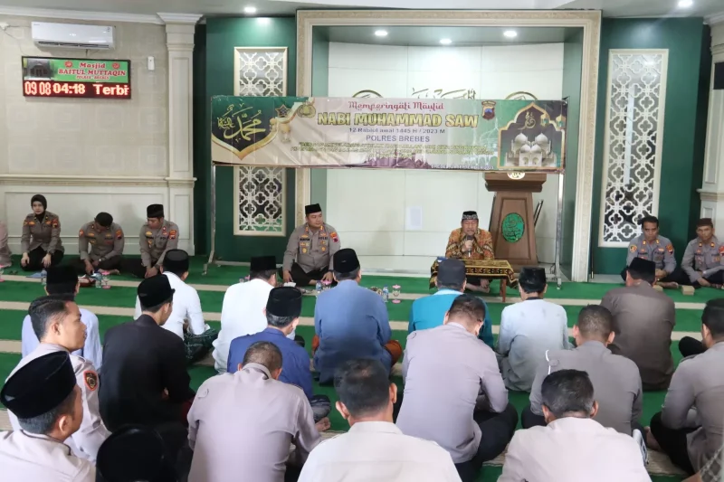 Brebes, poskota.online – Polres Brebes Polda Jawa Tengah menggelar peringatan Maulid Nabi Muhammad SAW tahun 1445 H tahun 2023, Kamis (21/9/2023).