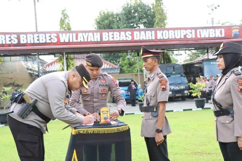 Serah terima jabatan ditandai dengan pembacaan surat keputusan dari Kapolda Jawa Tengah disampaikan oleh Kapolres Brebes sebagai inspektur upacara. Kemudian dilanjutkan dengan sumpah jabatan dan penandatanganan serah terima jabatan oleh kedua pejabat utama Polres Brebes tersebut.
