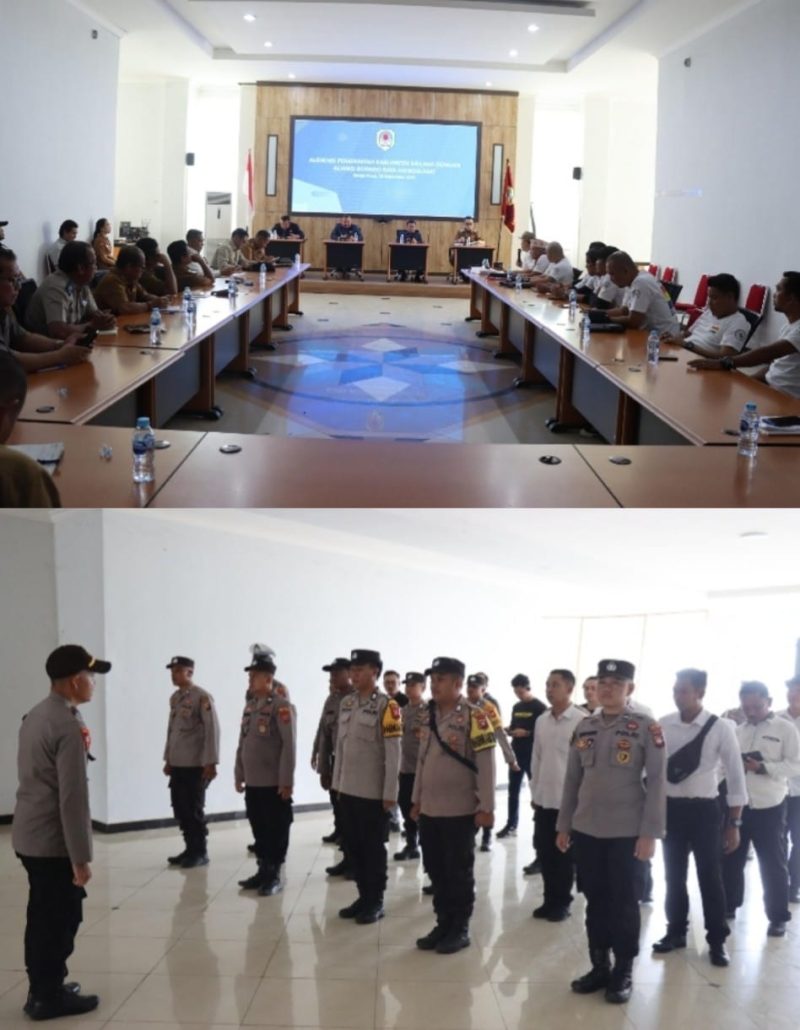 Melawi, 29 September 2025 — Polres Melawi, Polda Kalimantan Barat, menggelar pengamanan dalam kegiatan audiensi antara Pemerintah Kabupaten Melawi dengan Aliansi Borneo Raya Menggugat di Kantor Bupati Melawi. Audiensi dipimpin langsung oleh Bupati Melawi, H. Dadi Sunarya Usfa Yursa, didampingi Wakil Bupati, Ketua DPRD Kabupaten Melawi, dan Sekretaris Daerah.