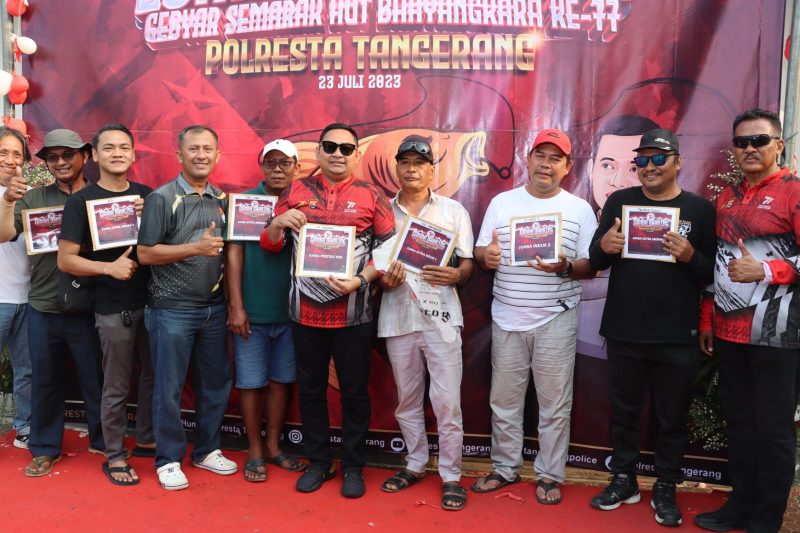 “Kegiatan lomba mancing dalam rangka Gebyar Semarak HUT Bhayangkara ke 77 di Darkum (daerah hukum) Polsek Balaraja,” terang Kapolresta Tangerang Kombes Pol Sigit Dany Setiyono.