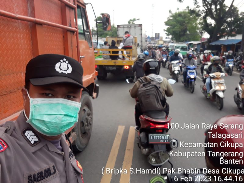 Kab.Tangerang,poskota.online – Personil Polsek Cikupa Bripka Saebatul Hamdi laksanakan Strong Point pagi hari sekaligus pengaturan Lalu lintas di Jalan raya serang Depan kecamatan lama Kecamatan Cikupa kabupaten Tangerang.Senin (06/02/2023). Pukul 16.46 Wib.