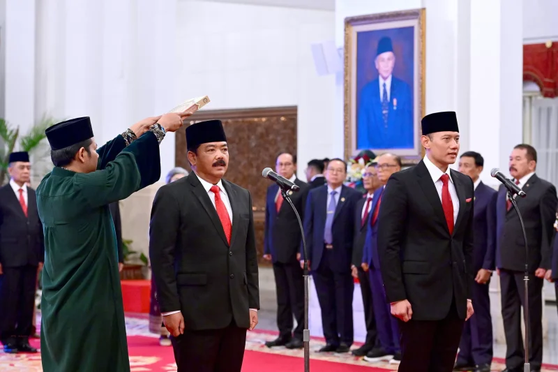 Hadi Tjahjanto dilantik berlandaskan pada Keputusan Presiden Republik Indonesia Nomor 34/P Tahun 2024 tentang Pemberhentian dan Pengangkatan Menteri Negara Kabinet Indonesia Maju Periode Tahun 2019-2024. Dalam kesempatan tersebut, Presiden Jokowi mengambil sumpah jabatan menteri yang dilantik.