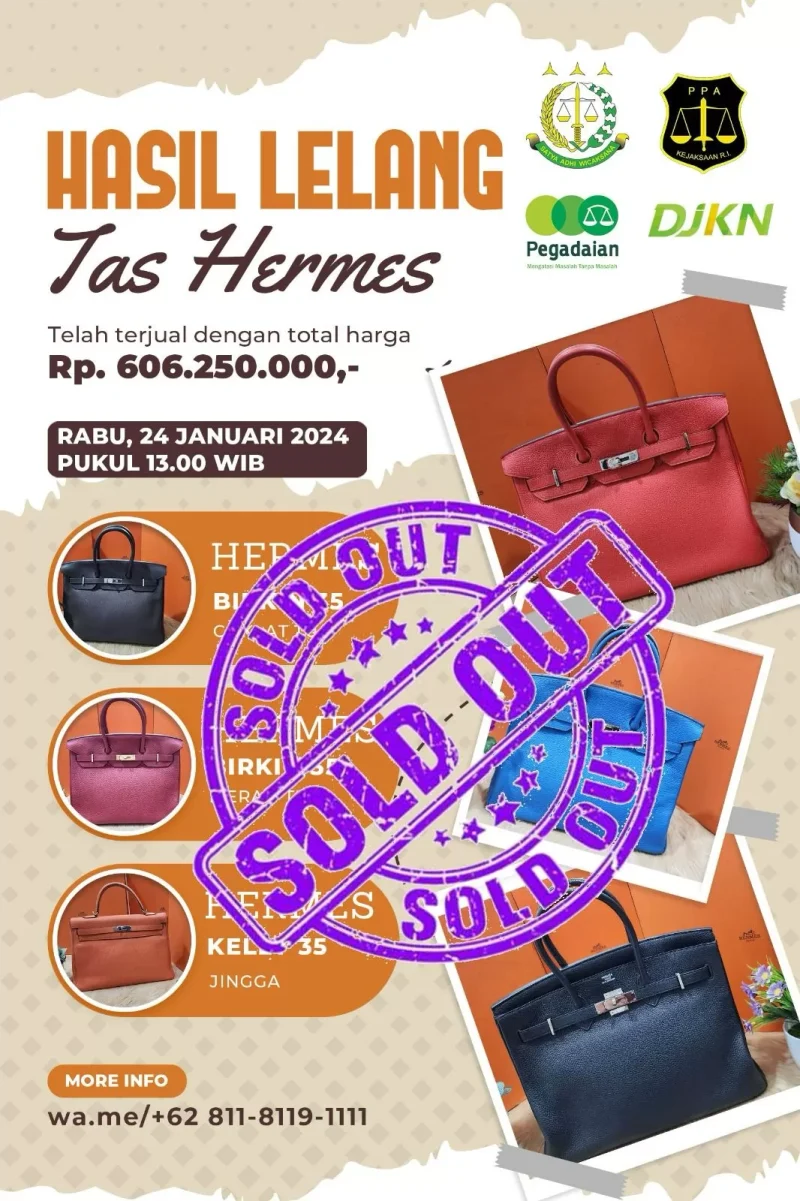 Pusat Pemulihan Aset Berhasil Melelang 6 Tas Hermes Hasil Sita Eksekusi Milik Istri Terpidana BENNY TJOKROSAPUTRO