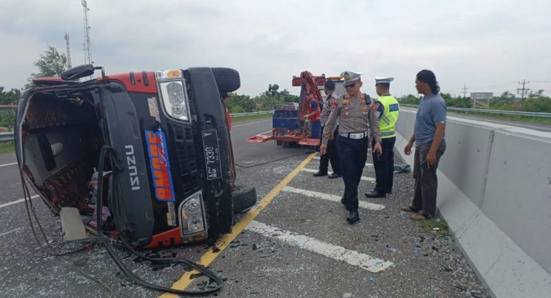 “Lakalantas tunggal KBM roda empat jenis elf terguling di jalan KM 259 Tol Pejagan-Pemalang mengakibatkan 3 orang mengalami luka ringan dan tidak ada korban meninggal dunia.” Jelas Kasatlantas