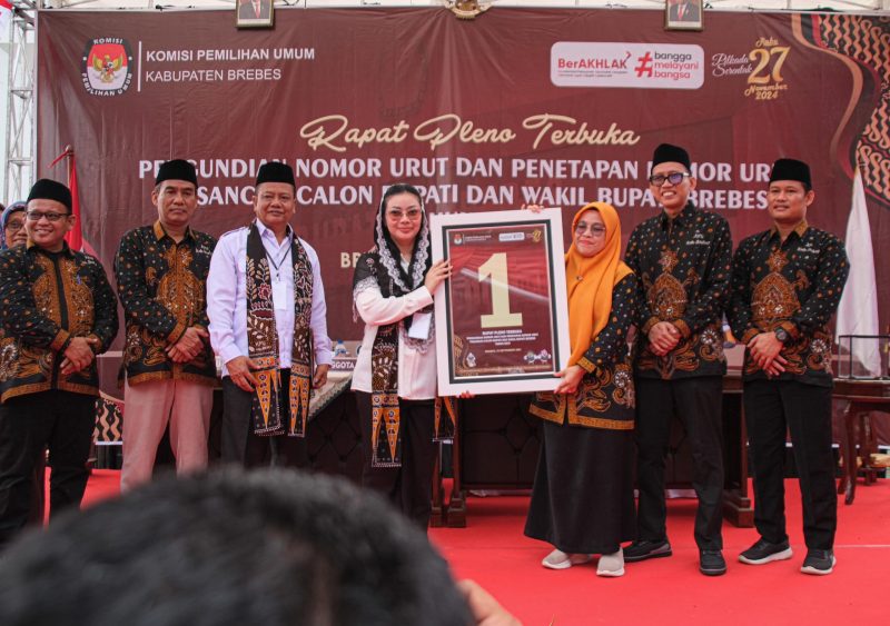 Brebes, Poskota.online – Pasangan calon Bupati dan Wakil Bupati Brebes 2024-2029, Paramitha Widyakusuma-Wurja, resmi mendapatkan nomor urut 1 dalam Pilkada Brebes 2024.