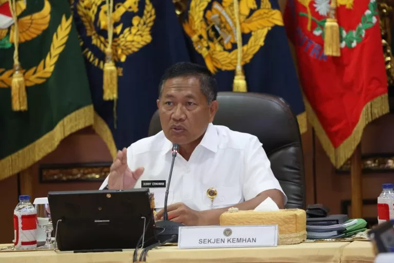 Jakarta, Poskota.online – Sekretaris Jenderal Kementerian Pertahanan Marsdya TNI Donny Ermawan Taufanto memimpin rapat pembahasan Rancangan Produk Strategis Kebijakan Pertahanan Negara di Ruang Rapat Palapa Kemhan RI, Jakarta, Kamis (19/10). Rapat tersebut turut dihadiri Irjen Kemhan Letjen TNI Budi Prijono, Rektor UNHAN RI Letjen TNI Jonni Mahroza, serta para pejabat Eselon I dan II di lingkungan Kemhan dan TNI.