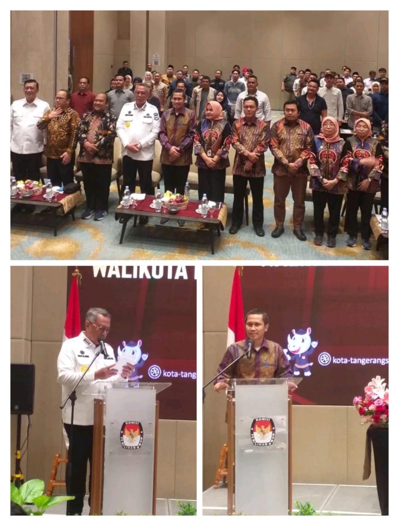 Hadir dalam acara tersebut Wali Kota Tangsel Benyamin Davnie, jajaran Forkompinda, Parpol, dan PPK se-Kota Tangsel. Acara berlangsung di Hotel Trembesi BSD, Serpong. Minggu, (11/8/24).
