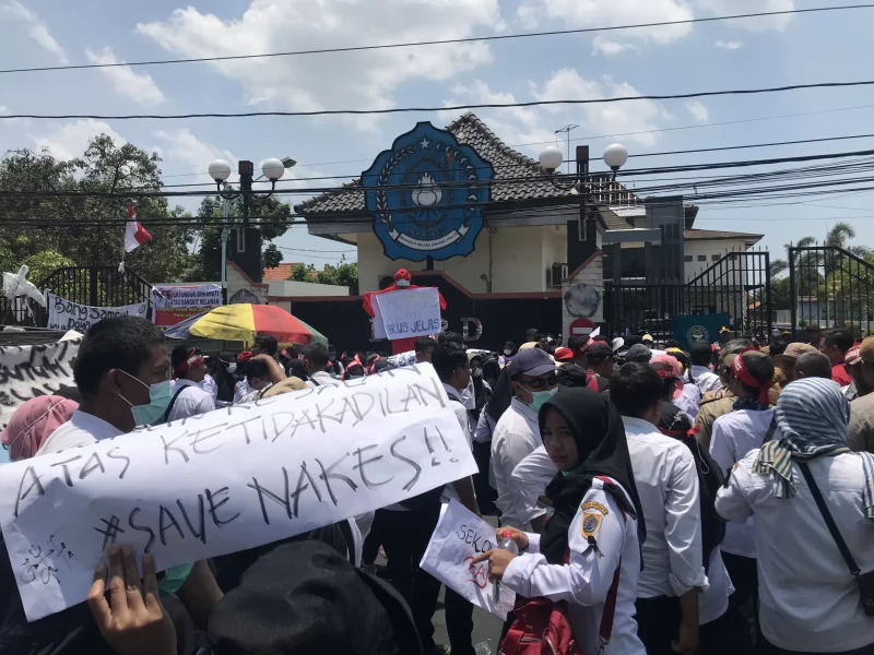 Sebelumnya, Ratusan tenaga kesehatan atau nakes honorer mengancam mogok kerja jika tuntutannya tak dipenuhi. Mereka melakukan aksi demo di depan Kantor Pemerintahan Terpadu Brebes, Jumat 22 September 2023.
