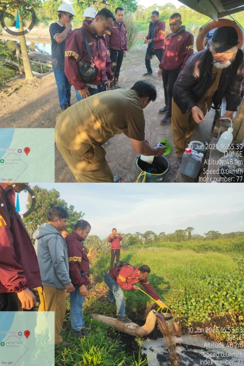 Tim Direktorat Reserse Kriminal Khusus (Ditreskrimsus) Polda Kalbar yang dipimpin oleh Kasubdit IV Tipidter Ditreskrimsus Kompol Yoan Febriawan melakukan pemeriksaan langsung ke kolam limbah dan aliran sungai milik PT BPG di Kecamatan Terentang, Kabupaten Kubu Raya pada Selasa (10/6).
