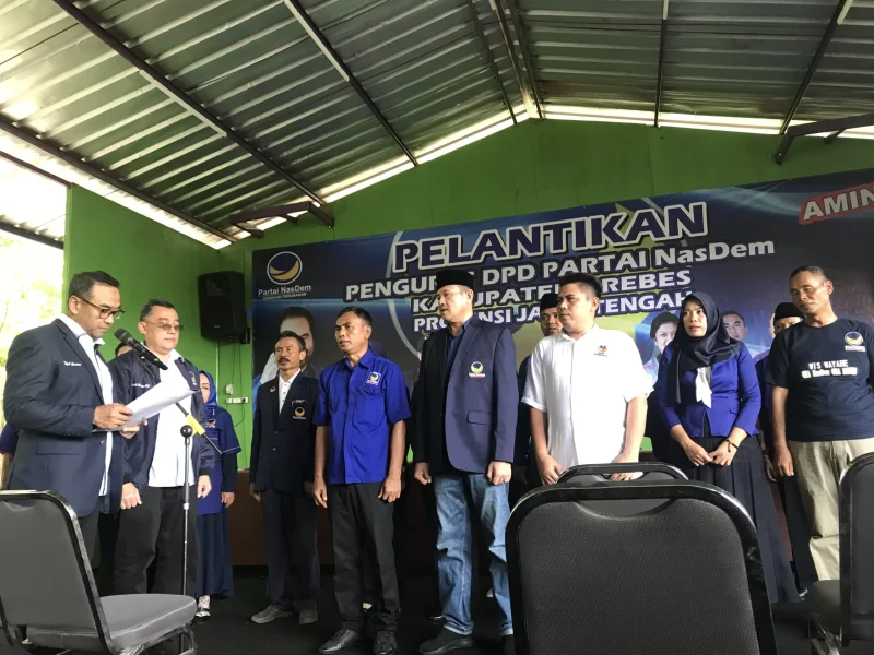 Pelantikan dilaksanakan dengan penuh khidmat dan dihadiri Ali Mansyur DPW NasDem Jateng, pengurus, anggota dan simpatisan partai.