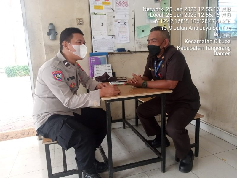 Kab.Tangerang,poskota.online – Aipda Asep kusheri bhabinkamtibmas polsek cikupa polresta tangerang Polda Banten Yang Bertugas Kesehariannya Selaku Pembina di desa cibadak kecamatan cikupa kabupaten Tangerang, Melaksanakan tugas rutin monitoring wilayah adalah Wujud Kepedulian Bhabinkamtibmas Mendukung Program Kerja Kapolda Banten (Commander Wish)”Yuk Ngopi Wae” Dalam Kegiatan Dialogis Dan Monitoring Wilayah binaanya, Duduk Bareng Bersama warga masyarakat  Bersilaturahmi Sambil Yuuk Ngopi Wae. Bertempat di pos security PT.STI kampung cibadak Rt,018/07 desa bojong kecamatan cikupa pada rabu,(25/01/2023) sekira jam 13.00 Wib.