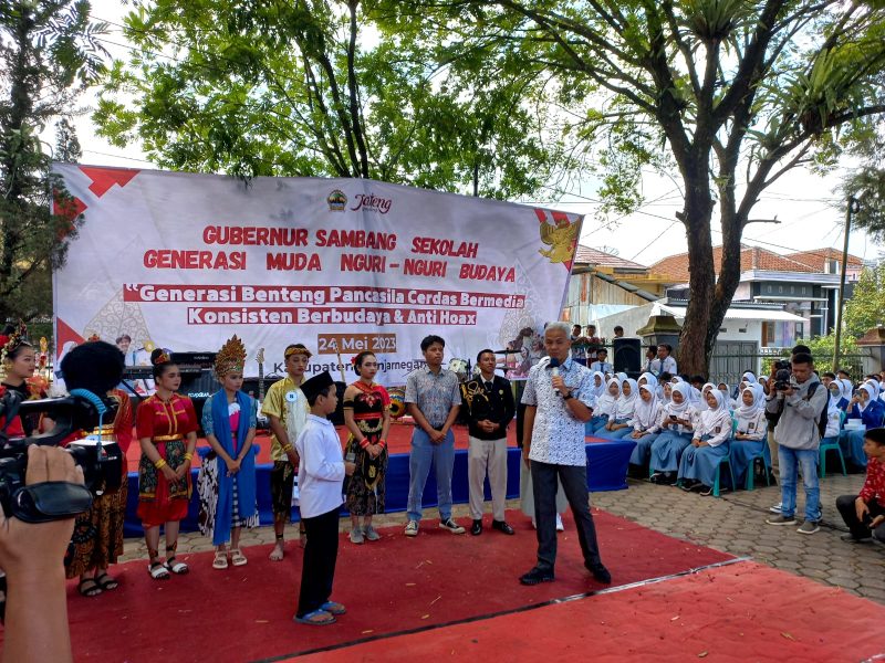 Banjarnegara, poskota.online – Gubernur Jawa Tengah Ganjar Pranowo mengunjungi SMAN 1 Karangkobar Banjarnegara pada Rabu (24/5/2023).