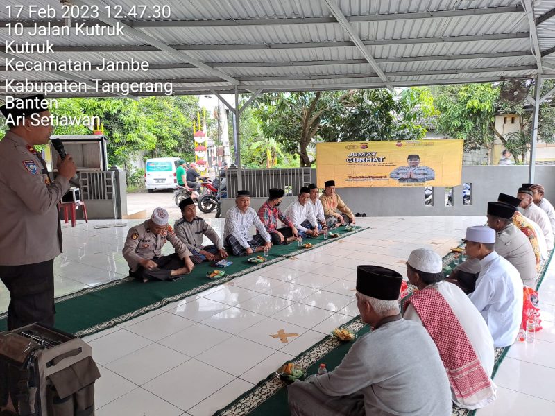 Tangerang,poskota.online – Polsek TIgaraksa Polresta Tangerang melaksanakan Jumat Curhat untuk tampung keluh kesah masyarakat, KJumat Curhat tersenbujd di pimpin langanung oleh Wakapolsek Tigaraksa AKP Kasimun, Jumat Curhat dilaksanakan di Masjid Ar Raudhah Si Desa Kutruk Kecamatan Jambe Kabupaten Tangerang, Jumat (17/2/2023).