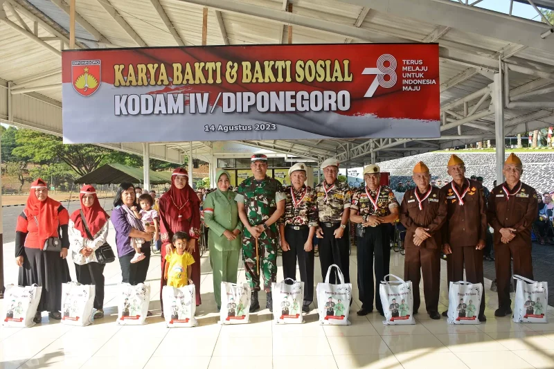Semarang, poskota.online – Menyambut HUT Kemerdekaan Republik Indonesia ke-78 Tahun 2023, Kodam IV/Diponegoro menggelar kegiatan Baksos berupa pembagian 9.500 paket sembako kepada masyarakat sekitar yang diserahkan langsung secara simbolis oleh Panglima Kodam IV/Diponegoro Mayjen TNI Widi Prasetijono bersama Ketua Persit KCK PD IV/Diponegoro Ibu Novita Widi Prasetijono di Lapangan Parade, Kompleks Makodam. Senin (14/8/2023).