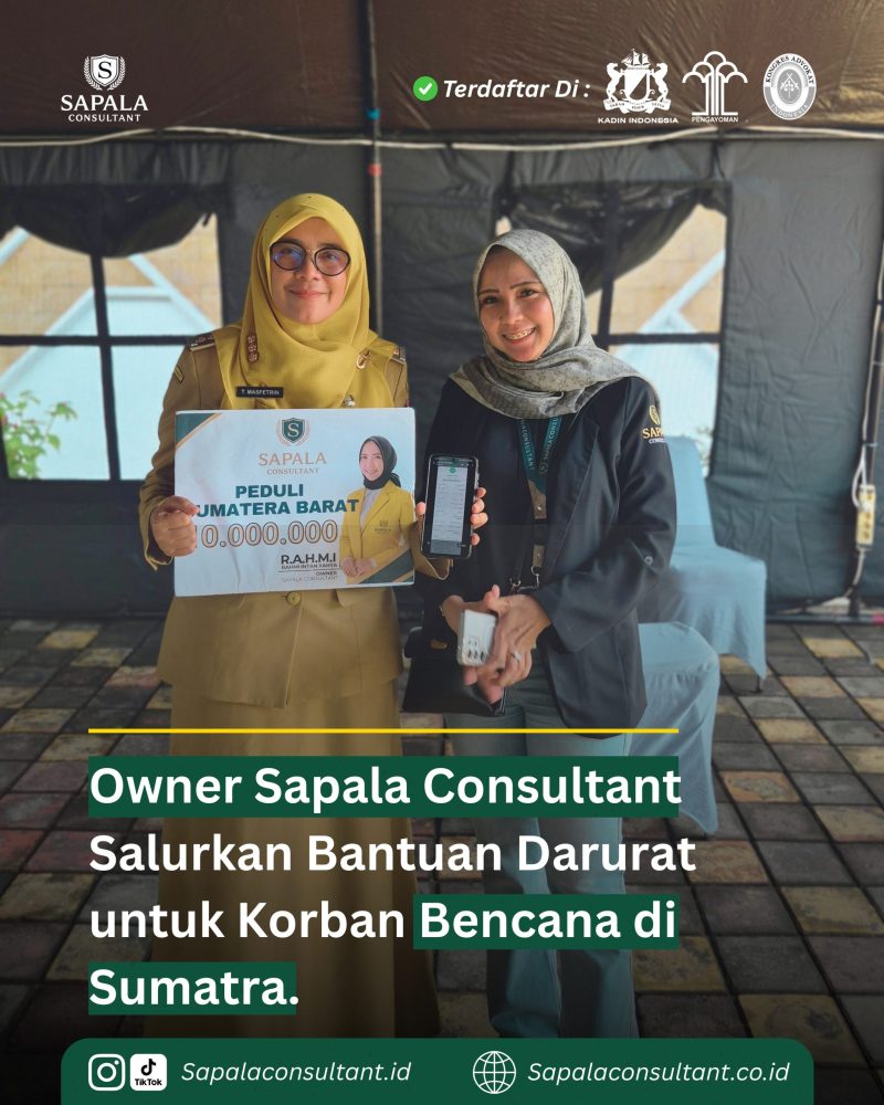 Jakarta, – Owner Sapala Consultant, Rahmi Intan Yahya, bersama tim Sapala Consultant menunjukkan kepedulian sosial dengan menyalurkan bantuan darurat bagi para korban bencana alam yang melanda sejumlah wilayah di Sumatra.