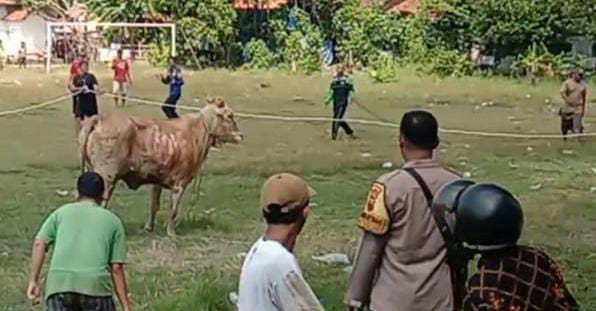 Setelah berjibako ada sekitar 30 menit dalam mengamankan sapi yang akan diqurbankan mengamuk sempat menyerang warga .