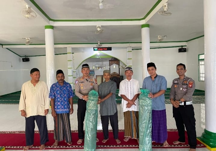 “Bismillah, kami memberikan 2 gulung sajadah panjang untuk masjid Al-Muhsinin Desa Kenual di terima langsung pengurus masjid,” ujar Kasat Lantas.