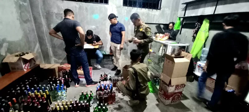 “Ada 303 botol minuman keras berbagai jenis dan merk ini akan kita bawa ke kantor, sedangkan pengelola atau pemiliknya akan kita panggil besok ,”lanjutnya