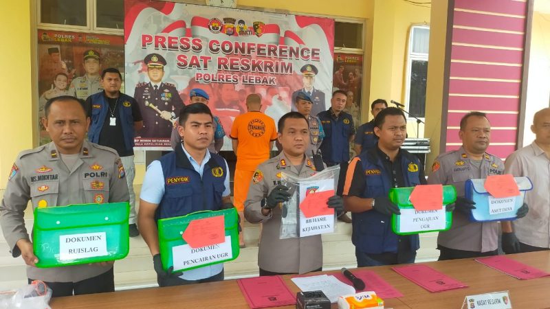 Dalam Press Conference Satreskrim Polres Lebak yang dihadiri oleh Kapolres Lebak Polda Banten AKBP Wiwin Setiawan didampingi Kasatreskrim Polres Lebak Iptu Andi Kurniady Eka Setyabudi, KBO Satreskrim Polres Lebak Iptu Mulyadi, Kasie Humas Polres Lebak Iptu Aminarto dan Kanit Tipikor Sat Reskrim Polres Lebak IPDA Putu Ari Sanjaya.