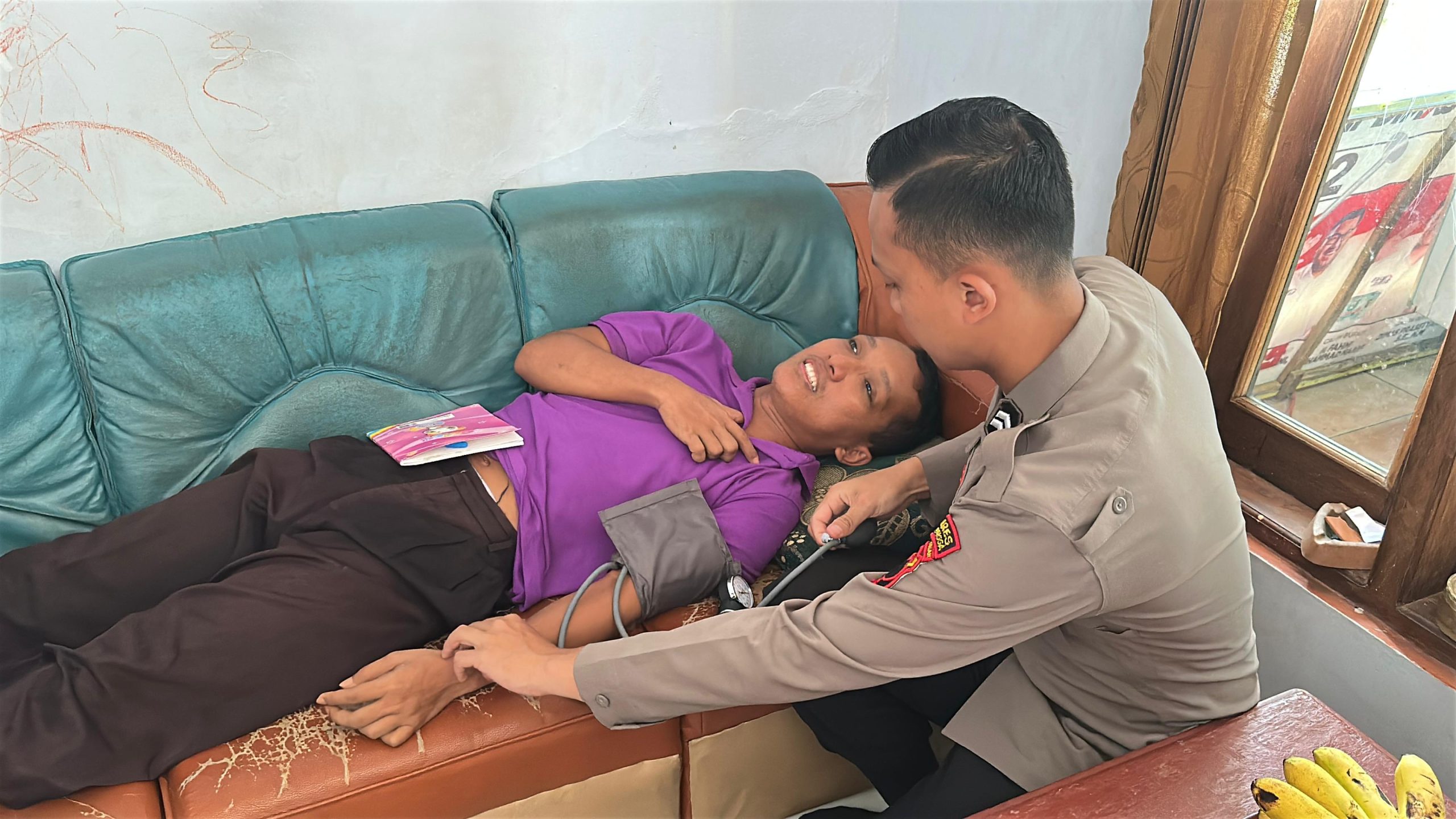 Selain menyerahkan bantuan, tim dari Seksi Dokkes juga melakukan pemeriksaan kesehatan kepada Indra. Pemeriksaan meliputi pengukuran tekanan darah, denyut nadi, serta konsultasi medis bersama dokter kepolisian.