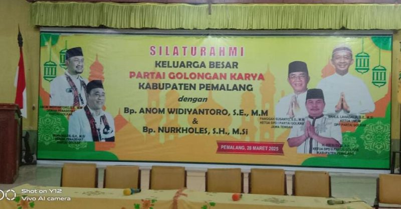 Pada hari Jum ‘ at 28 Maret 2025 Partai Golongan Karya ( Golkar ) Kabupaten Pemalang melaksanakan Silaturahmi Keluarga Besar Partai Golkar dengan Anom Widiantoro ( Bupati Pemalang ) dan Nurkholes ( Wakil Bupati Pemalang ) yang dilangsungkan pada sekitar pukul : 16 : 00 WIB , bertempat di Kantor Dewan Pimpinan Daerah ( DPD ) Kabupaten Pemalang Jalan Pemuda No.93 .Mulyoharjo Kecamatan Pemalang Kabupaten Pemalang .