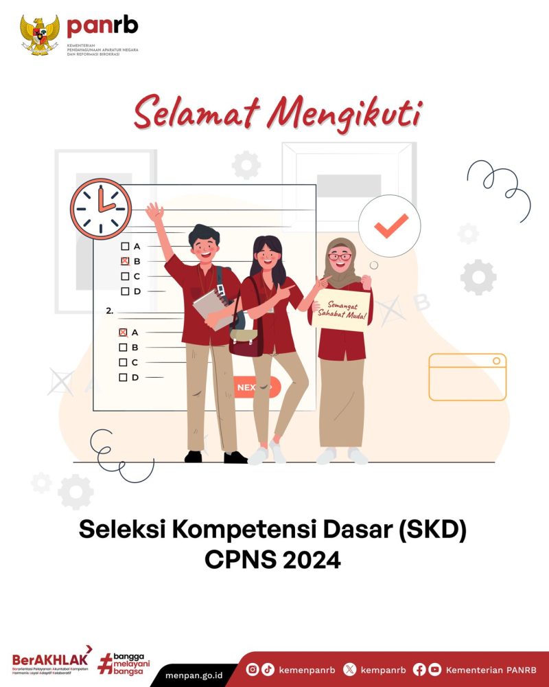 Sebelumnya Kementerian PANRB telah menerbitkan panduan terkait materi soal dan nilai ambang batas SKD CPNS Tahun 2024 melalui KepmenPANRB No. 321/2024. “SKD CPNS dilakukan untuk mengukur kemampuan dan karakteristik yang dimiliki pelamar berupa pengetahuan, keterampilan, dan perilaku apakah sesuai dengan standar kompetensi dasar PNS,” imbuh Anas.