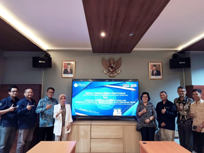 Jakarta,Poskota.online – Penyerahan Surat Keputusan (SK) Menteri Pendidikan, Kebudayaan, Riset dan Teknologi Republik Indonesia (RI), Nomor: 392/E/0/2023 tentang Izin pembukaan program studi Bisnis Digital Program Sarjana pada Sekolah Tinggi Ilmu Komputer Cipta Karya Informatika, di Meeting Room LLDIKTI Wilayah III Jakarta, Jum’at (19/5/2023).