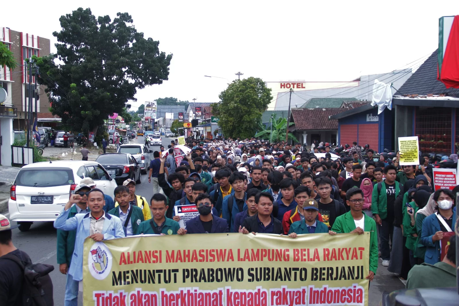 Ribuan mahasiswa dari berbagai Universitas berkumpul untuk menuntut agar janji-janji yang diungkapkan oleh Prabowo Subianto selama kampanye itu tidak diingkari. Menurut Hasan selaku koordinator aksi menyatakan, “Kami selaku mahasiswa akan berusaha keras untuk memastikan dukungan mayoritas masyarakat Lampung kepada Prabowo Subianto dapat menghasilkan kepemimpinan yang memihak pada rakyat”.