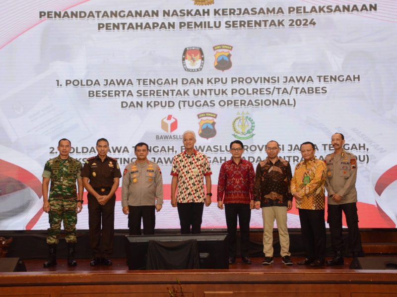 Pada pelaksanaannya acara tersebut dihadiri oleh Gubernur Jateng H. Ganjar Pranowo, S.H, M.I.P, Kapolda Jateng Irjen. Pol. Drs. Ahmad Luthfi, S.St.Mk., S.H., Kajati Jateng Dr. Priyanto, S.H., M.H, Kepala Pengadilan Tinggi Jateng DR. Nommy HT Siahaan,S.H., Ketua KPU Jateng Paulus Widiyantoro, S.E., M.M., dan Ketua Bawaslu Jateng Muhammad Amin.***