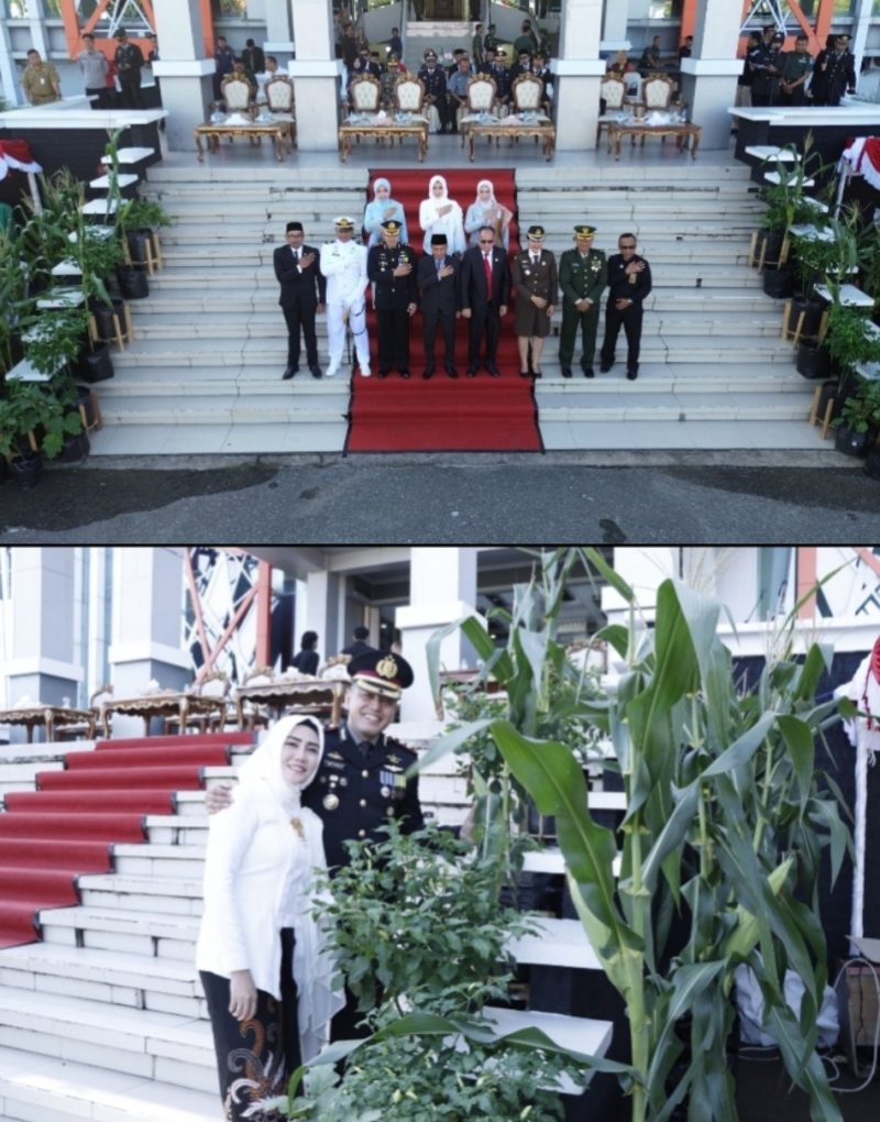 KETAPANG Poskota Online– Polda kalbar, Ada pemandangan tak biasa yang menarik perhatian saat pelaksanaan upacara Hari Bhayangkara ke-79 di halaman Kantor Pemerintah Daerah (Pemda) Ketapang, pada Selasa pagi (01/07/2025). Di tengah nuansa khidmat dan semangat yang mengiringi jalannya upacara, tamu undangan dibuat penasaran dengan keberadaan tanaman jagung asli yang tertata rapi di sekitar tenda utama.