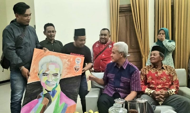 Dalam pertemuan tersebut, Ketua DPP IPDA Arifin Kusuma Wardani menyerahkan lukisan mural karya seniman asal Banjarnegara yang bernama Edo yang berjudul “Wajah Sumringah Ganjar” di rumah Kepala Desa Mertasari, Kecamatan Purwanegara Banjarnegara.