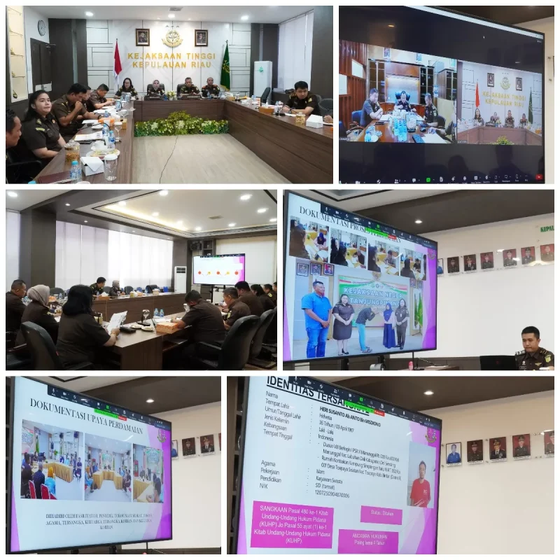 Tanjungpinang, Poskota.Online – Wakajati Kepri Rini Hartatie, SH., MH., didampingi Aspidum Bayu Pramesti, SH., MH., Koordinator Bidang Pidum Rusmin, SH., MH., Kasi Oharda, Kasi Teroris dan Lintas Negara Kejati Kepri, bersama-sama dengan Kajari Tanjungpinang Lanna Wanike Pasaribu, S.H., M.H., Kasi Pidum Kejari Tanjungpinang, Kajari Bintan I Wayan Eka Widdyara, S.H., dan Kasi Pidum Kejari Bintan, telah melaksanakan expose terhadap perkara pidana dihadapan jajaran Jaksa Agung Muda Tindak Pidana Umum Kejaksaan Agung RI yang diwakili oleh Direktur Tindak Pidana Orang dan Harta Benda (OHARDA) pada Jaksa Agung Muda Tindak Pidana Umum Kejaksaan Agung RI Nanang Ibrahim Soleh, SH., MH., melalui sarana virtual dengan mengajukan 2 (dua) perkara pidana yang dimohonkan untuk diterapkan Penghentian Penuntutan berdasarkan Keadilan Restoratif yaitu :