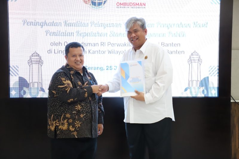 Serang,Poskota.online – Kantor Pertanahan di Provinsi Banten menerima hasil Penilaian Kepatuhan Standar Pelayanan Publik Tahun 2022 dari Ombudsman Republik Indonesia (ORI) Perwakilan Provinsi Banten pada Rabu (25/1/2023).