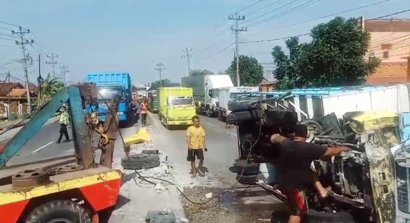 Kecelakaan pertama terjadi di Desa Bangsri, Kecamatan Bulakamba, sekitar pukul 07.00 WIB. Sebuah truk dengan nomor polisi N 9214 UI yang bermuatan plastik, melaju dari arah barat menuju timur. Diduga Supir truk kelelahan, sehingga truk tersebut menabrak pembatas jalan dan terguling hingga menghalangi jalur Pantura.