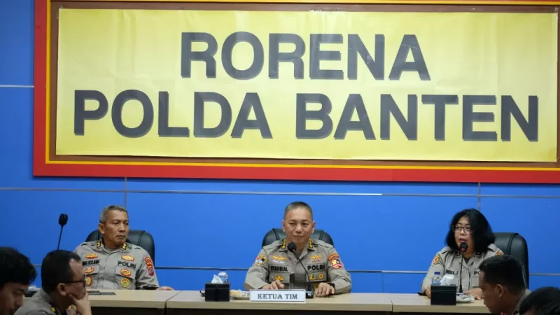 Serang, Poskota.online – Polda Banten terima kunjungan kerja tim Penelitian Puslitbang Polri tentang “Evaluasi Kualitas dan Kuantitas Bangunan Rumah Dinas Guna Pemenuhan Kesejahteraan Personel Polri” bertempat di ruang perjamuan Biro Rena Polda Banten pada Senin (16/10).