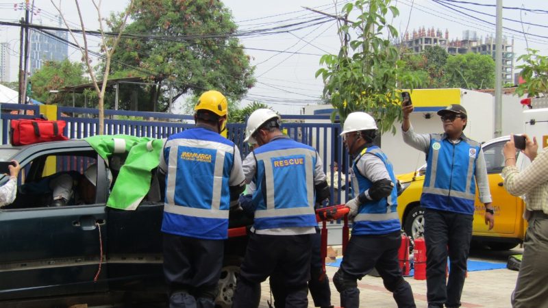 Adapun simulasi penanganan kecelakaan ini, PT JJC berkolaborasi dengan PT Jasamarga Tollroad Operator (JMTO) selaku service provider pengoperasian Jalan Layang MBZ