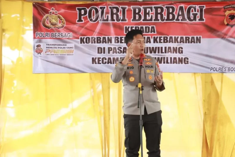 Yang mana di sela-sela peninjauan yang dilakukannya tersebut Kapolres Bogor memberikan bantuan paket sembako kepada para pedagang pasar yang terdampak dari kebakaran tersebut.