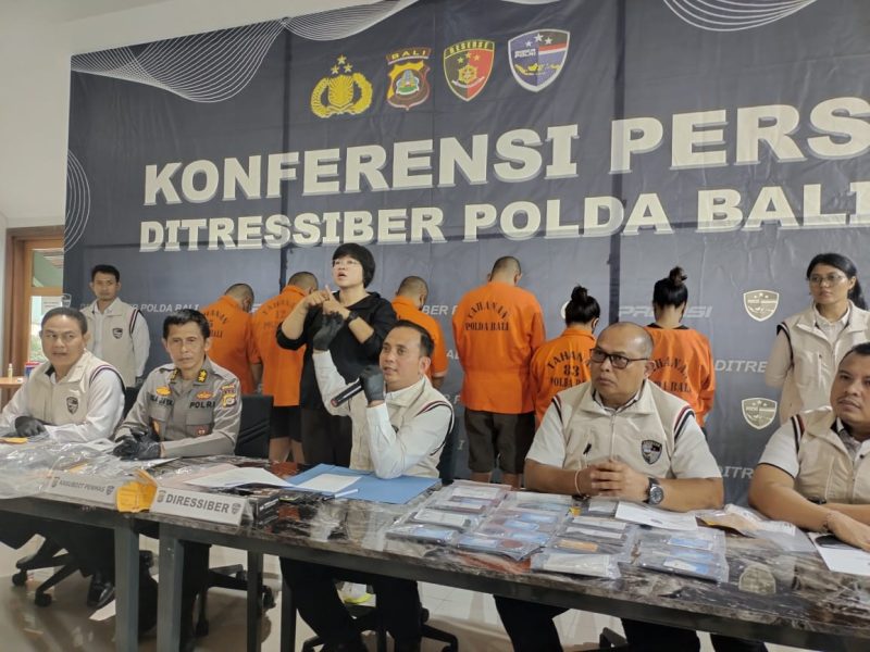 Bali, poskota.online – Direktur Reserse Siber Polda Bali Ranefli Dian Candra S.I.K., M.H., Didampingi Kasubid Penmas Bidhumas AKBP Ketut Eka Jaya S.Sos., M.H., dan para Kasubdit Ditressiber, konfrensi pers di gedung Ditsiber, pada rabu 9/7/2025.