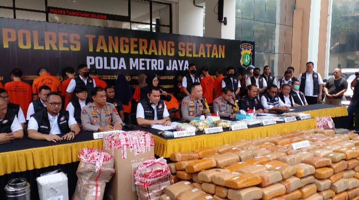 “berkat kerja keras dan maksimal rekan rekan dari Satuan Reserse Narkoba Polres Tangerang Selatan, membuahkan hasil yang sangat luar biasa bahwa ada beberapa perkara menonjol yang berhasil di ungkap pada periode agustus sampai dengan September 2024. Ada tiga cluster atau kelompok yaitu satu pemain/pelaku antar pulau dan dua kelompok merupakan jaringan internasional”terang AKBP Victor dalam konferensi pers tersebut.