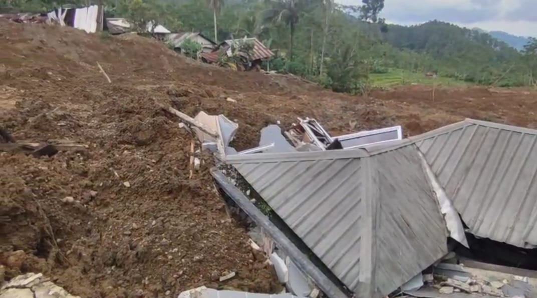 Sekitar 30 rumah mengalami rusak berat akibat longsor di Dukuh Situkung Desa Pandanarum, Kecamatan Pandanarum , Banjarnegara yang terjadi pada Minggu Siang (16/11/2025). (foto/Istimewa)