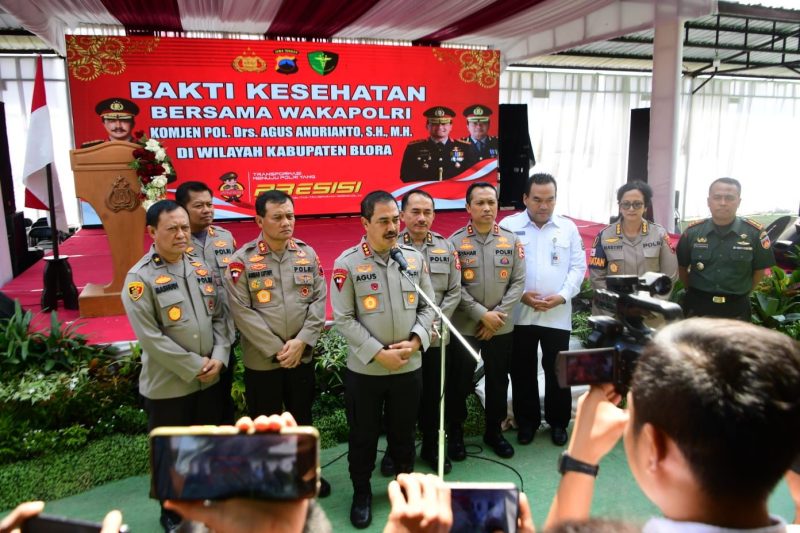 BLORA,Poskota.Online-Wakapolri Komjen Pol Agus Andrianto hari melaksanakan bakti sosial dan bakti kesehatan di halaman Mapolres Blora Rabu (26/07).